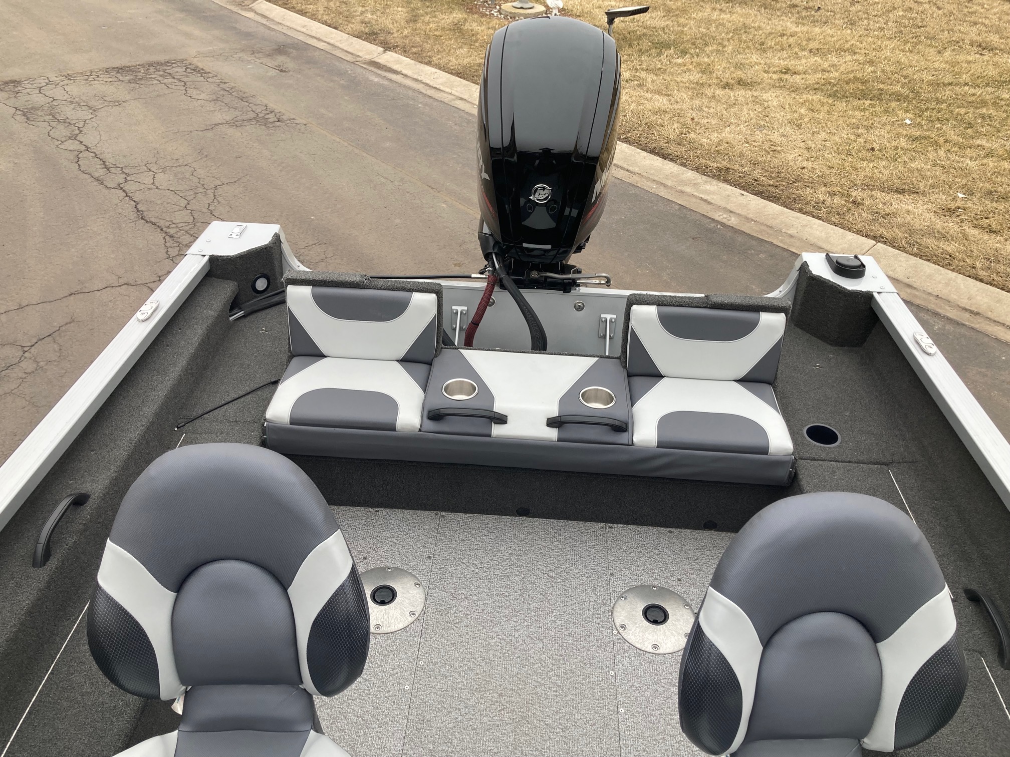 This boat says previous owned but looks new. Better then good condition. 115HP Mercury, Dratto Latch,Radio, and 3 livewells. A must see.